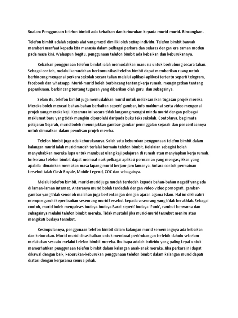 Kebaikan Dan Keburukan Telefon Bimbit Docx Kebaikan Dan Keburukan Telefon Bimbit Pada Masa Kini Telefon Bimbit Pintar Menjadi Kegilaan Para Remaja Course Hero